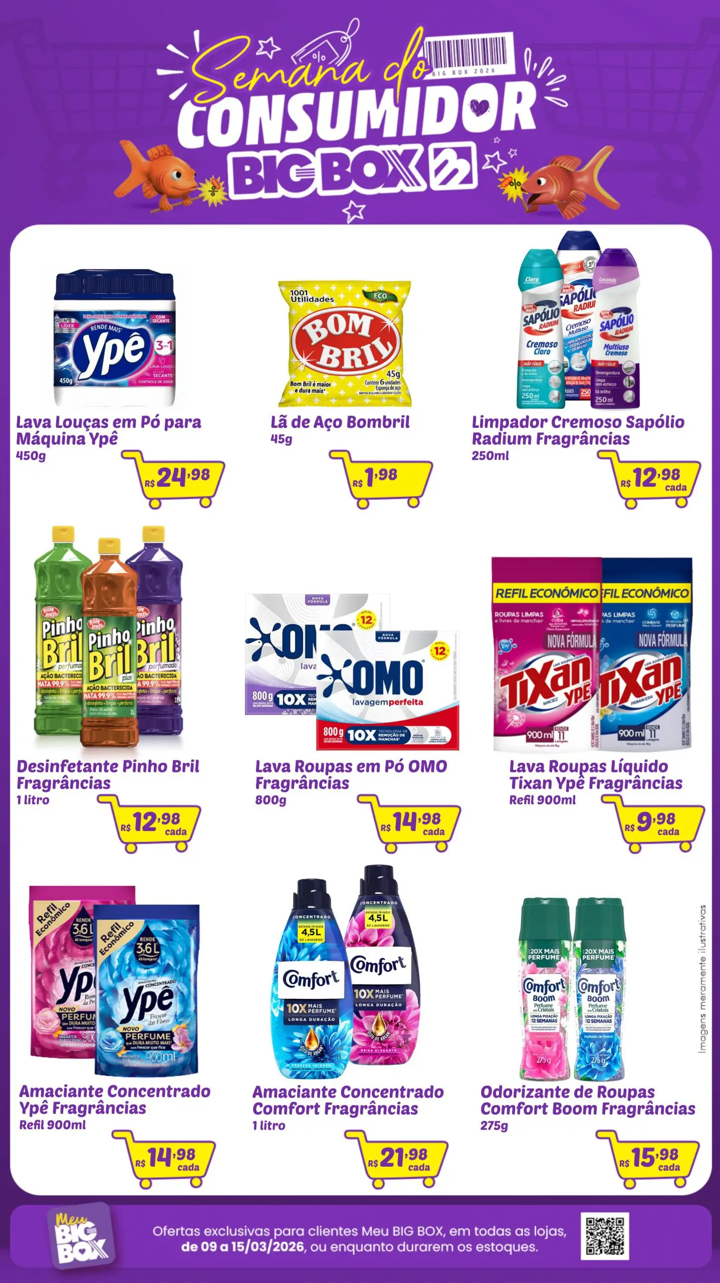 Encontre, no BIG BOX, os melhores produtos para cuidar de você, da sua família e da sua casa. Qualidade, variedade e melhor preço sempre à sua disposição.