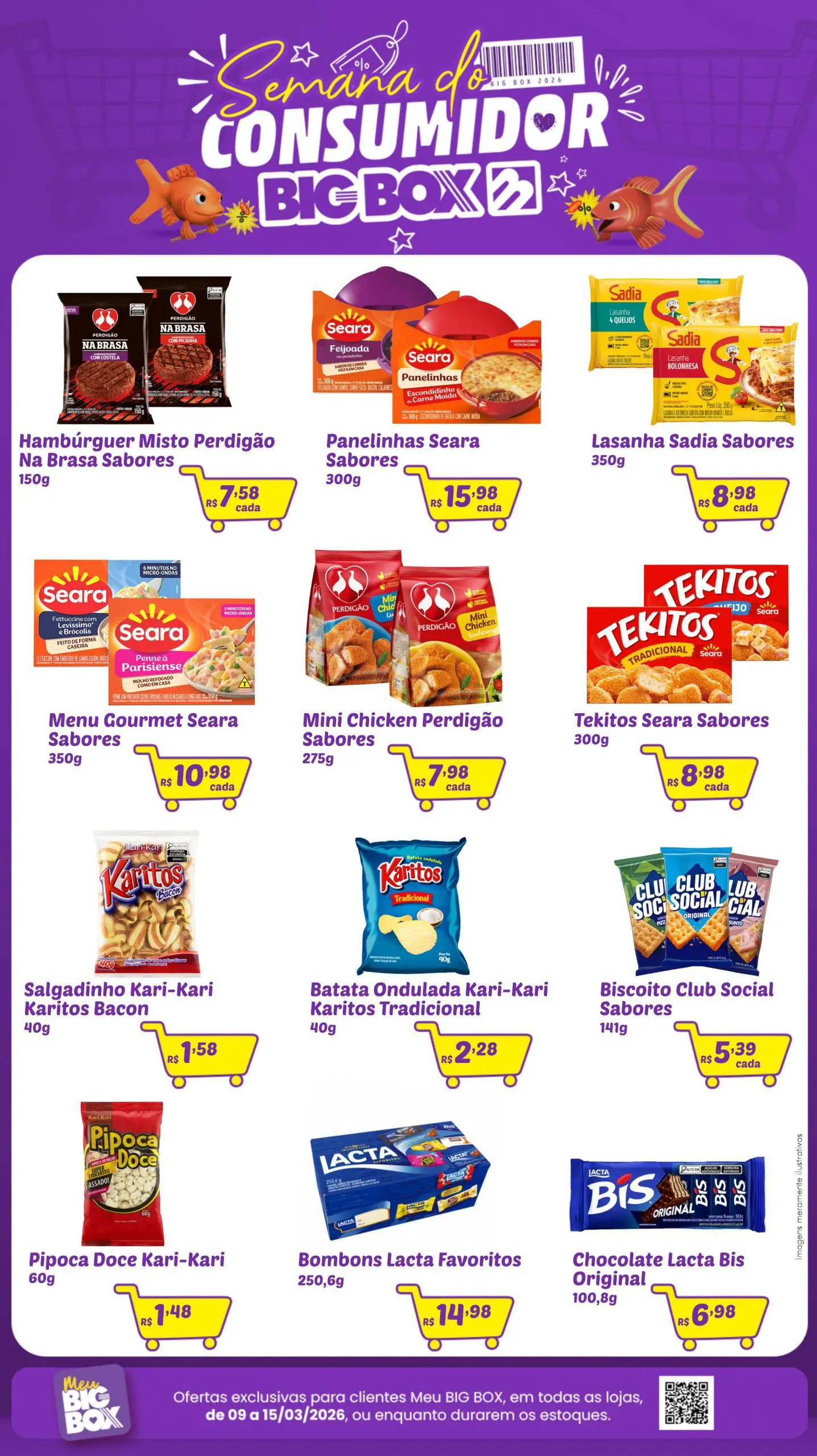 O BIG BOX tem tudo que você procura. Inclusive, produtos integrais, sem glúten, sem lactose ou zero açúcar. Muita qualidade e variedade em um só lugar.