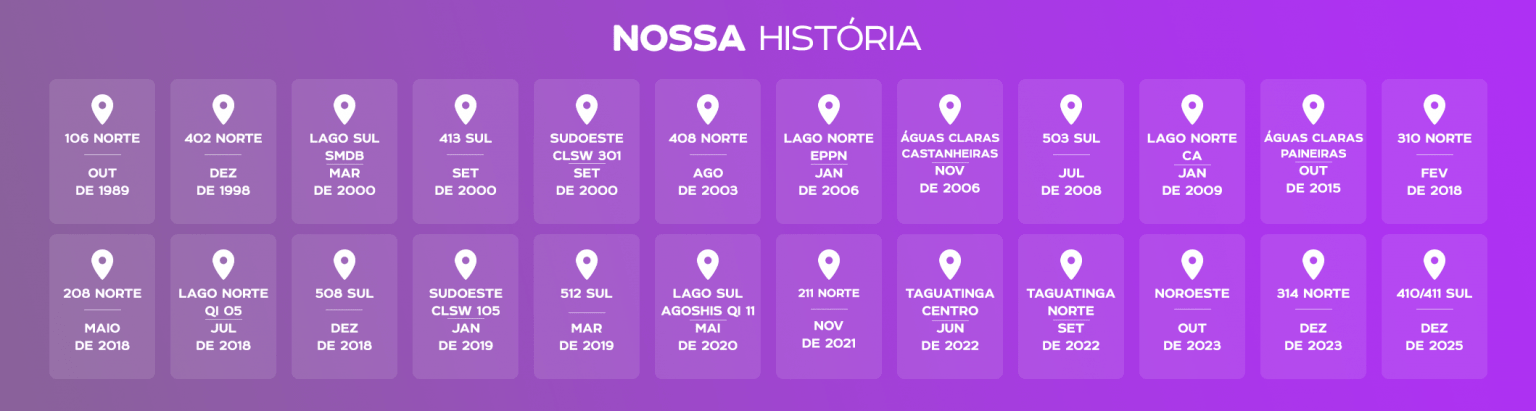 Nossa trajetória começou em 1989, com a inauguração da primeira loja no Distrito Federal. Desde então, crescemos acompanhando o desenvolvimento da cidade e as necessidades dos nossos clientes.